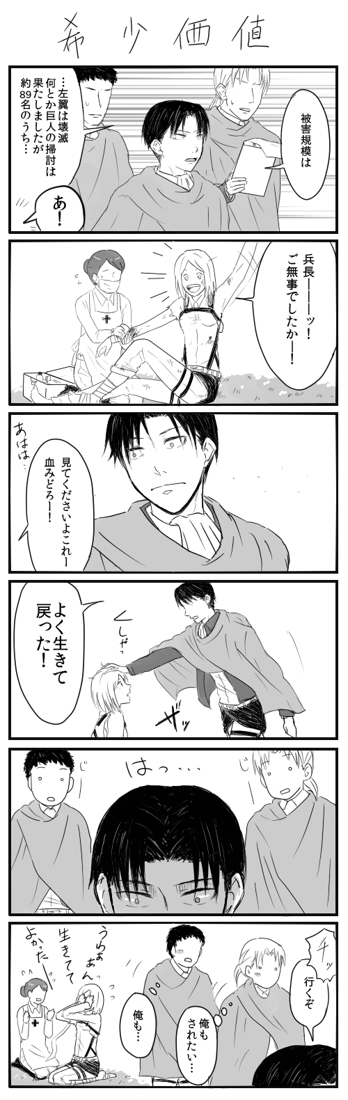 19P… 進撃:リヴァペト 2013年07月31日 ピクシブに上げました。結構描いたなーと上げながら思いました。読むの面倒くさそう。表紙と最後をちょっと足しただけなので(しかも使いまわし)ここで読んだ方は何も面白みないです…すいません…割とすぐ飽きちゃう方なのでこんなに一つのジャンル・カプを描いたのは久々ってか珍しくて自分でもびっくりしてます。ちょっとブランク開いた⑧の後くらいがやばかったですが…乗り越えるともーリヴァイとペトラが可愛い可愛いwww最近オフがすさんでいるからか…日々の癒しがリヴァペトになってる…まーまた飽きはくるのでしょうが…ひとまず浮かんだネタは描き尽くしとこうと思います―