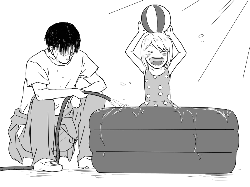 みーんみんみんみん 進撃:リヴァペト 2014年07月25日 ⑦ペトママ「はーいリヴァイくんも笑って笑ってー」リヴァイ「……………いやクッソあちーんすけど…」前の続きを描く気がなくなったのでとりあえず時期的な場面を。前の続きはいずれまた…