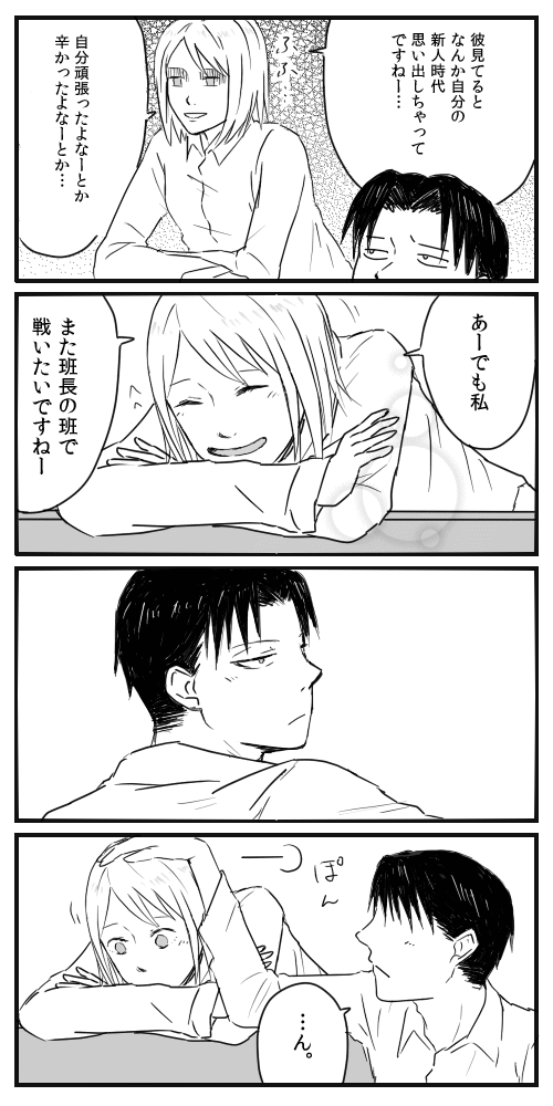 拍手お返事 進撃:リヴァペト 2014年02月11日 うーんなんかお絵かきする気分になかなかなれなかったんですがやべーバレンタインもうすぐやんけーと気づいてちょっと恋する気分盛り上げんと描けん!と思って●tuneでperfu●eを延々と聴いてたらperfum●にはまりました。可愛い…三人とも可愛い…たまらん…生まれ変わったらあーちゃんに私はなりたい。というわけで少しずつですが続き描いております。バレンタインには…上げたいなあ…以下拍手お返事であります! つづき