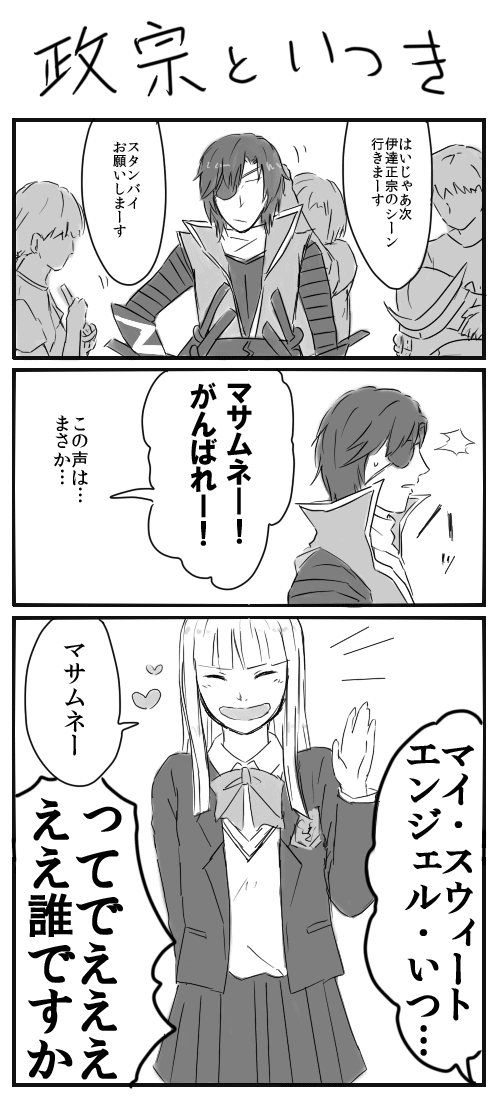 戦国舞台裏BASARA4 BASARA 2014年03月24日 BASARA4ネタバレがあります いやちょっとoffで辛いことがあったので…アホらしいのを描きたくなったんです…よくある…なんだ…?現パロ…じゃないな…なんていうんだろこれ…バサラキャラを出演者にしました的な…うんよくある設定です。いつにも増して雑なのは割と眠いからです。時間とれんなー